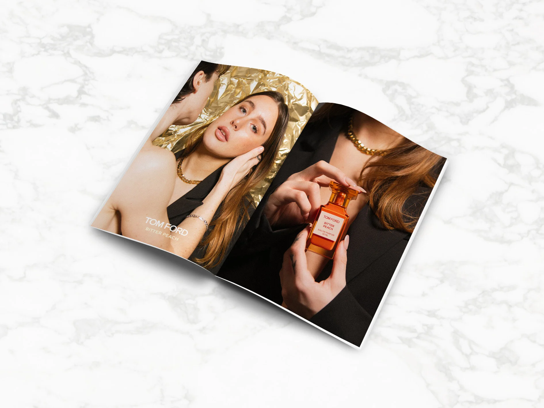 This campaign focuses on the playful contrast of Tom Ford’s “explicitly sweet and dangerously voluptuous” product. Our team decided to keep the clean, minimalistic aesthetic of the brand, but rather focus on the enticing mystery of sex. The Bitter Peach fragrance encourages cheeky play - with an intoxicating touch.